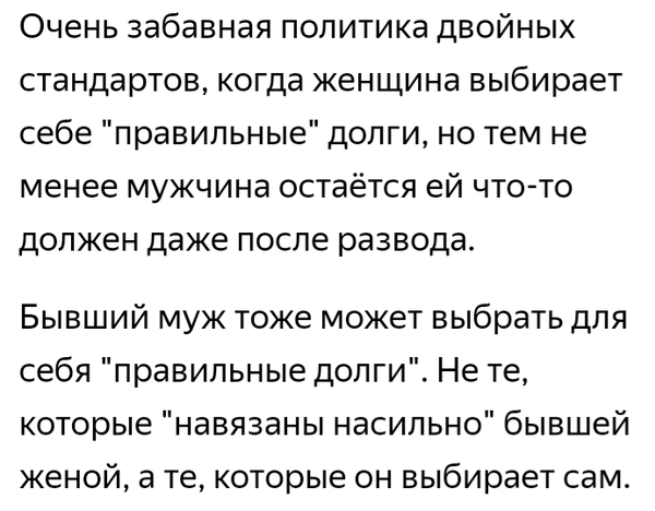 Исходя из этого, вернёмся к теме долгов перед бывшими жёнами.