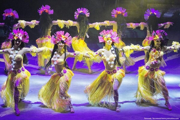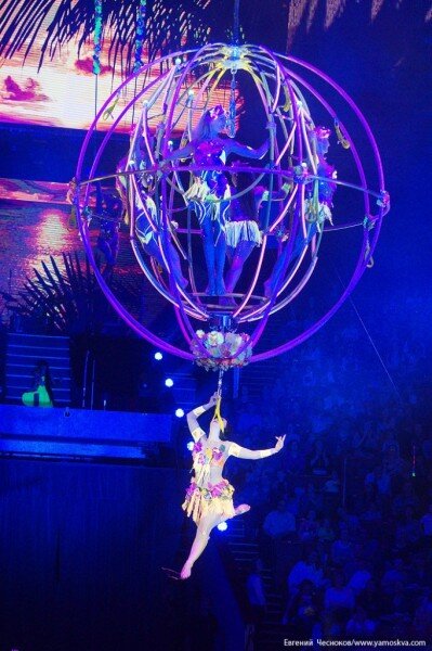 Не успеваешь прийти в себя, как оказываешься на бразильском карнавале под латиноамериканские ритмы! Танцовщицы в ослепительных костюмах с огромными крыльями и перьями создают невероятное зрелище. Параллельно свои трюки исполняют гимнасты под руководством Назара Якубова и дрессированные обезьяны. Это тот номер, который хочется пересматривать снова и снова.
