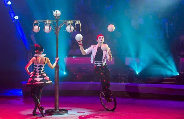 За считанные секунды зрители переносятся в праздничный Париж под звуки зажигательного канкана. Панорамные светодиодные экраны мастерски создают нужную атмосферу. Жонглеры на колесах Алена Сосина и заслуженный артист России Михаил Иванов виртуозно исполняют сложнейшие трюки с мячами. Следом акробаты на дорожке под руководством Рустама Байрамукова заставляют затаить дыхать — настолько безупречно и слаженно выглядит их выступление.