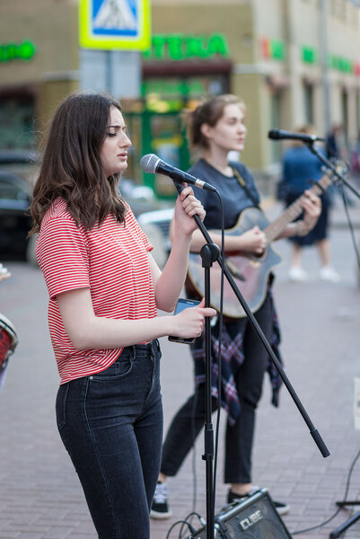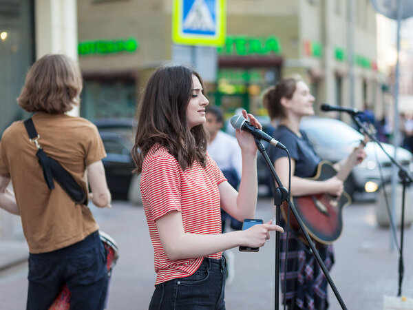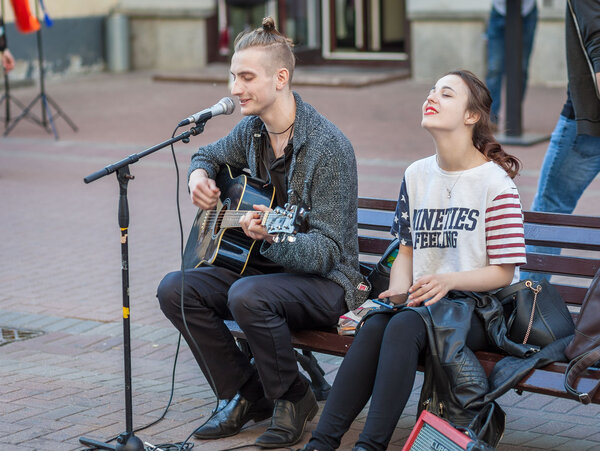 Рядом с ними выступала занимательная парочка: парень исполнял хиты группы «Сплин».