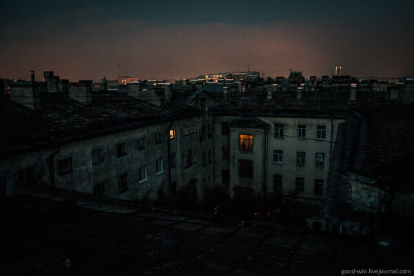В самый разгар этой спешки пришло новое сообщение: первоначальный адрес пришлось сменить из-за конфликта с местными жителями, охранявшими крышу. К счастью, новая точка оказалась даже ближе. Через несколько минут мы уже были во дворе нужного дома. Александр подробно объяснил маршрут: открытая дверь подъезда, подъём на верхний этаж, проход через чердак и выход на крышу.