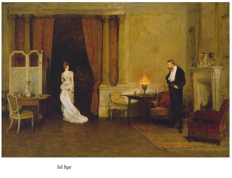 "Первое облако", художник Уильям Куиллер Орчардсон. Согласно сюжету, девушка отвергла предложение мужчины. Внизу надпись, добавленная на картинку Интернет-пользователями: "Досвидули"
