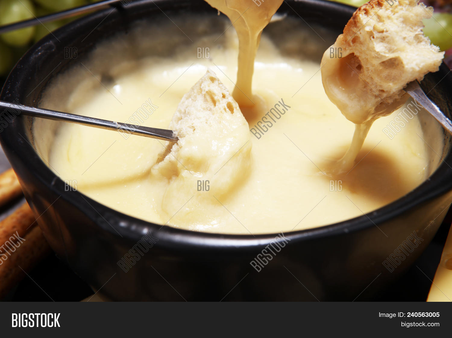 С чем сочетать: Помимо традиционного хлеба и мяса, сырное фондю отлично гармонирует с креветками, маринованными огурчиками, вялеными томатами и маслинами.