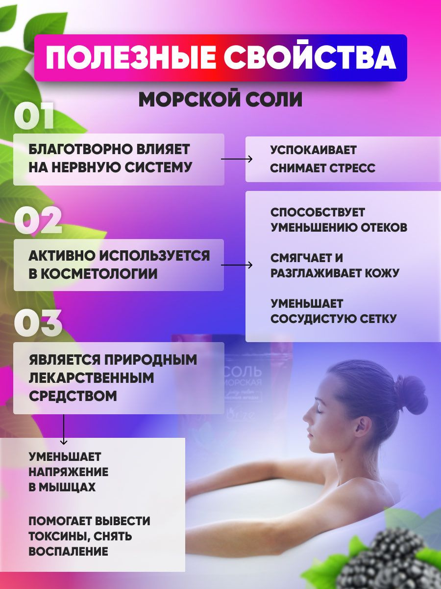 - Натуральный источник минералов: Благодаря щадящему методу добычи (выпариванию) морская соль сохраняет практически весь спектр полезных микроэлементов, в отличие от рафинированной поваренной.