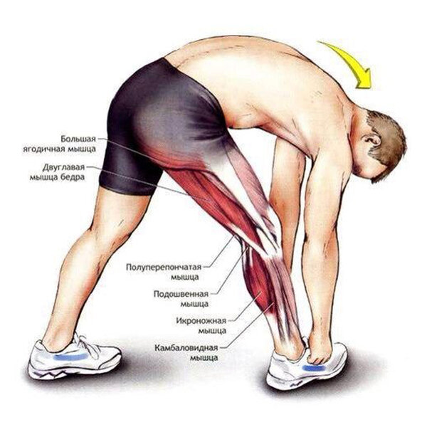 Глубокий наклон способствует растяжению подколенных сухожилий и мышц ягодиц, что снимает напряжение в области таза и улучшает общую эластичность тканей вокруг сустава.