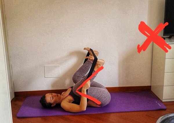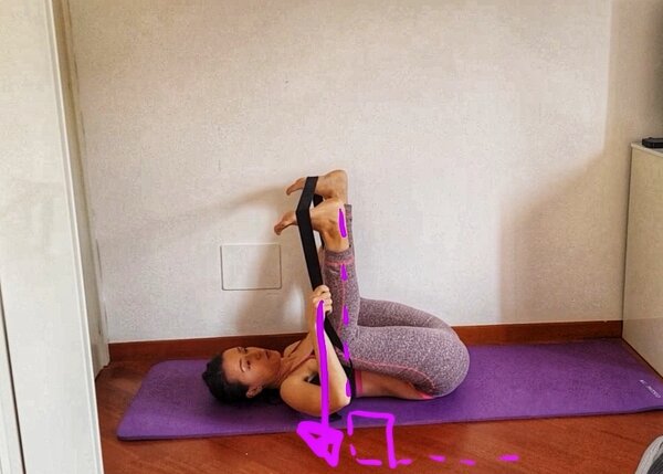 Поза 2: Вытяжение ног с ремнем (Супта Падангуштхасана)