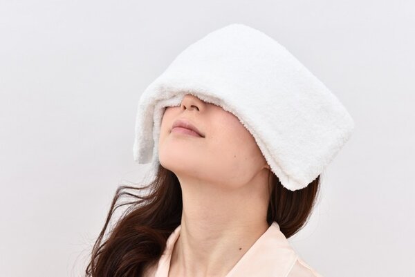Небольшое полотенце смочите водой, оберните пищевой пленкой и прогрейте в микроволновой печи на мощности 500 Вт примерно 30 секунд. Температура должна быть комфортной, приятной для кожи, а не обжигающей. Приложите теплое полотенце к закрытым глазам и области ушей, удерживайте около 1 минуты.