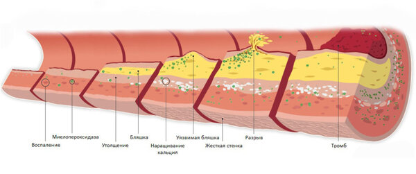 Неровная поверхность бляшки и турбулентный кровоток вокруг нее, а также склонность самой фиброзной покрышки к разрывам и изъязвлениям создают идеальные условия для формирования тромба (кровяного сгустка) прямо на поверхности бляшки. Такой тромб может внезапно и полностью перекрыть кровоток в сосуде. Именно он чаще всего становится непосредственной причиной острых катастроф.