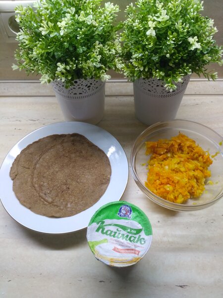 Шаг 2: Приготовление овощной начинки. Очистите морковь и натрите ее на средней терке. Лук мелко нарежьте. На антипригарную сковороду добавьте буквально каплю оливкового масла и обжаривайте овощи до мягкости. Чтобы они не пригорели и стали более сочными, можно влить немного воды в процессе жарки.