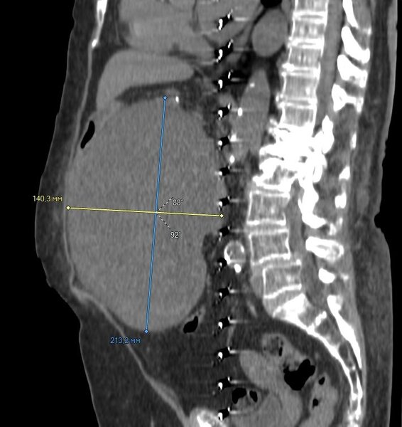 «Ситуация была критической, — пояснил хирург Сергей Александрович Борисов. — Опухоль достигла таких размеров, что оказывала сильное давление на магистральные кровеносные сосуды и протоки в брюшной полости. Это не только вызывало сильные боли, но и создавало прямую угрозу жизни: пациентке было тяжело принимать пищу, нарастали риски развития тромбоза, острой кишечной непроходимости и полиорганной недостаточности».