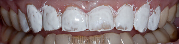 Настоящий вид зубов, покрытых таким лаком, далёк от идеала. Вместо голливудской улыбки получаются неровные полосы, неестественный, часто меловой оттенок белого. Состав крайне нестоек: любое соприкосновение с пищей, языком или даже лёгкое прикосновение приводит к его скалыванию и образованию неэстетичных проплешин.