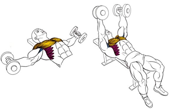 Что качаем: грудные мышцы, особенно их среднюю часть, и передние дельты. Совет: выполняйте движение плавно, чувствуя растяжение в грудных мышцах в нижней точке.