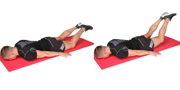 4. Подъём ног лёжа на животе (гиперэкстензия): 3 подхода по 10-12 повторений