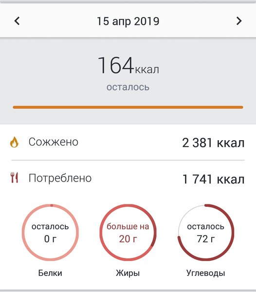 И что вы думаете? Я потратила 2300 калорий, а съела ровно 1741! Это почти идеальное попадание в мою норму в 1700 калорий. Я до сих пор не могу поверить в такое совпадение.