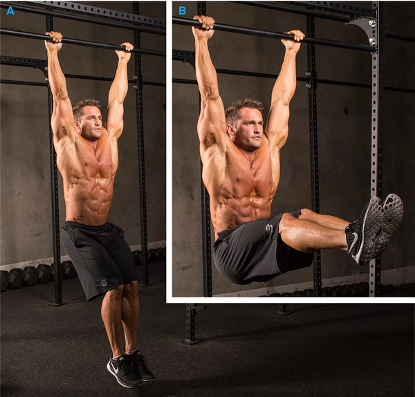 Для продвинутых: Упражнение «уголок» на турнике. Повиснув на перекладине, поднимайте согнутые в коленях ноги к груди, а затем пробуйте поднимать прямые ноги. Это значительно усиливает нагрузку.
