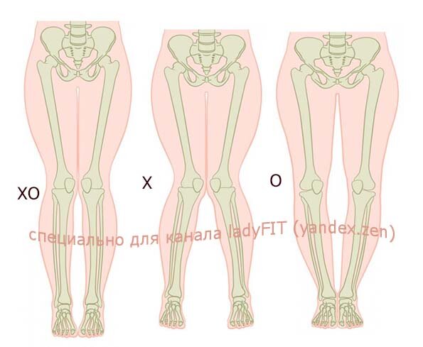 Встаньте прямо перед зеркалом, выпрямив ноги. Обратите внимание, соприкасаются ли лодыжки с внутренней стороной коленей. Если между ними есть заметный промежуток, это может указывать на наличие искажения.