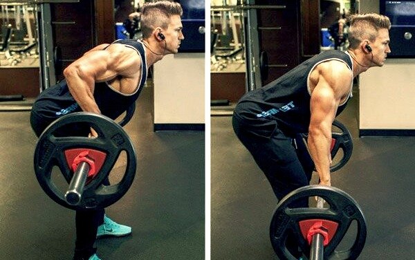 - Тяга штанги к поясу в наклоне — отлично прорабатывает толщину и детализацию мышц середины спины.