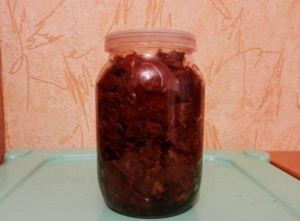 2. Спиртовая настойка. Смешайте луковую шелуху с медицинским спиртом или качественной водкой в пропорции 1:6 (например, 50 грамм шелухи на 300 мл спирта). Настаивайте в темном месте не менее 7 дней, периодически встряхивая. После настаивания процедите. Хранить готовую настойку следует в бутылке из темного стекла.