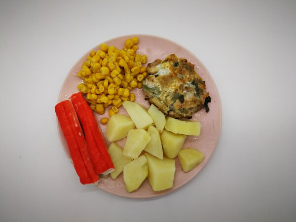 Ужин: Порция примерно на 400 калорий. Это была импровизация, чтобы доесть остатки продуктов. И, пожалуйста, без осуждения по поводу крабовых палочек — история с сардельками из прошлого поста до сих пор вызывает бурные обсуждения! ?