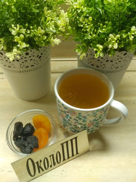 Легкий перекус состоял из смеси сухофруктов — кураги и чернослива (25 г), которые я также запила зеленым чаем.