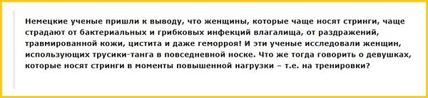 Если вы надеваете стринги изредка, для особого случая, — это личный выбор. Но их регулярное ношение, а тем более использование для тренировок, может систематически подрывать ваше здоровье.