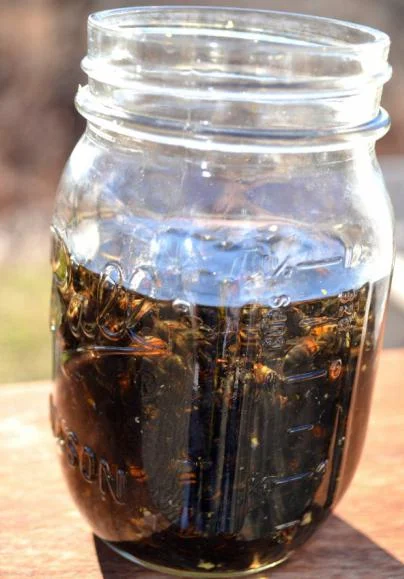 Для изготовления настойки стеклянную банку объемом 0,5 литра наполовину заполните сухим подмором. Залейте сырье 70%-ным медицинским спиртом так, чтобы он полностью покрыл пчел. Плотно закройте емкость и настаивайте в прохладном, защищенном от света месте в течение двух недель, периодически встряхивая.