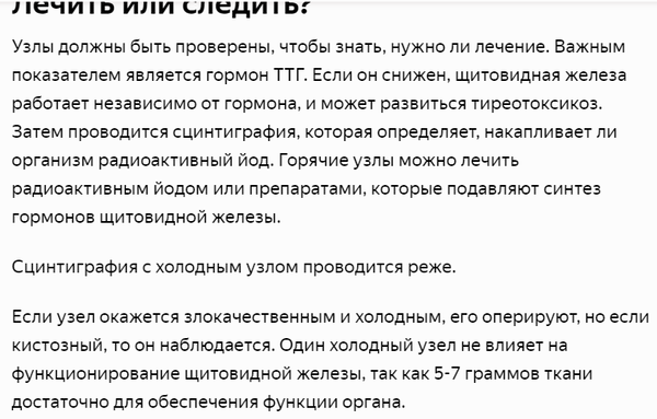 4) Некорректная терминология. Выражение «сцинтиграфия с холодным узлом» — грубая ошибка. Сцинтиграфия проводится с радиофармпрепаратом, а в ее результате узел может быть охарактеризован как «холодный» (не накапливающий препарат) или «горячий».