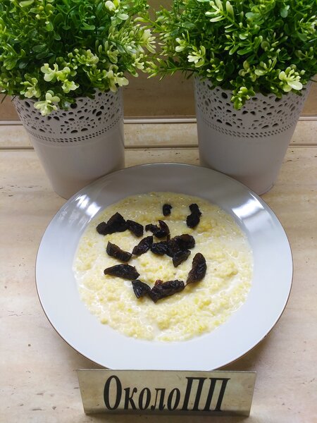 Мой завтрак сегодня состоял из пшенной каши на молоке (около 200 г) (1 к 1 развожу с водой, как приготовиться добавляю саше сахарозаменителя). В кашу еще добавил 20 г чернослива.