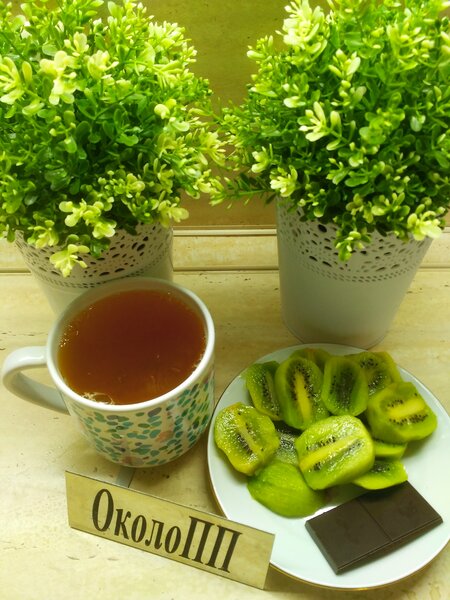 После такого активного отдыха у меня был перекус фруктами - киви (200 г). И зеленый чай с 20г шоколада 75 %.