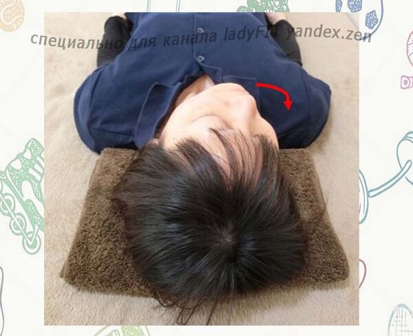 Выполняйте это упражнение утром после пробуждения или вечером перед сном. Лягте на спину и полностью расслабьтесь. Медленно и плавно поворачивайте голову влево и вправо. Это движение заставляет сокращаться и растягиваться глубокие затылочные мышцы, что стимулирует кровообращение. Хотя амплитуда движения кажется небольшой, важно выполнять его без спешки: один поворот в сторону должен занимать около 3 секунд, а угол поворота не должен превышать 30 градусов.
