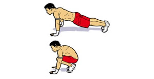 Из упора лежа поочередно подтягивайте колени к груди в быстром темпе. Это одно из лучших упражнений для развития выносливости и укрепления мышц кора.