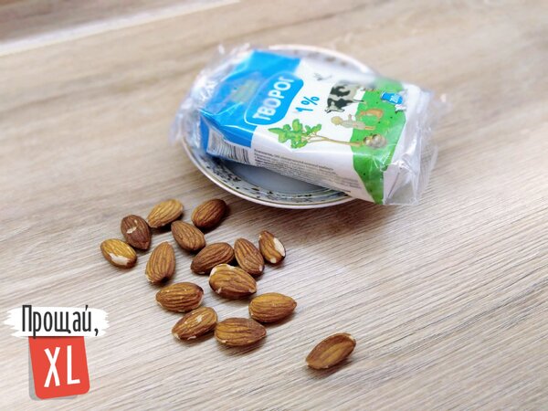Порция из 15 граммов очищенного миндаля и 100 граммов творога (1% жирности).