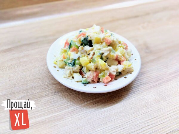 Блюдо: Диетический салат оливье (265 г).