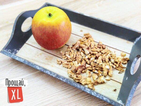 Блюдо: Свежее яблоко (200 г) + очищенные грецкие орехи (25 г).
