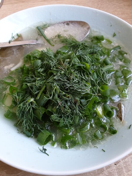 А ещё лето — время салатов. Моё любимое занятие — превращать любое блюдо в лёгкий салат. Вот, например, был суп, а стал салат: