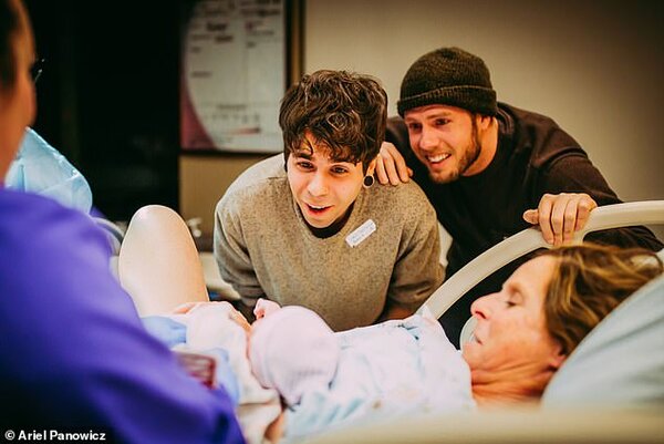 Эмоциональный момент первой встречи отцов с дочерью запечатлел фотограф. На снимках видно, как счастливые Мэтью и Эллиот впервые видят своего ребенка, которого держит на руках бабушка-героиня Сесиль.