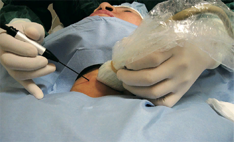 На изображении показана методика лазерной абляции узла щитовидной железы. Этот метод считается оптимальным для лечения небольших очагов папиллярного рака. Подробнее об оборудовании можно узнать на специализированном ресурсе.