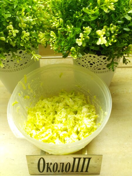 Шаг 1: Подготовка кабачка. Кабачок натрите на крупной терке. Чтобы тесто не было водянистым, обязательно хорошо отожмите излишки жидкости через марлю или просто руками.
