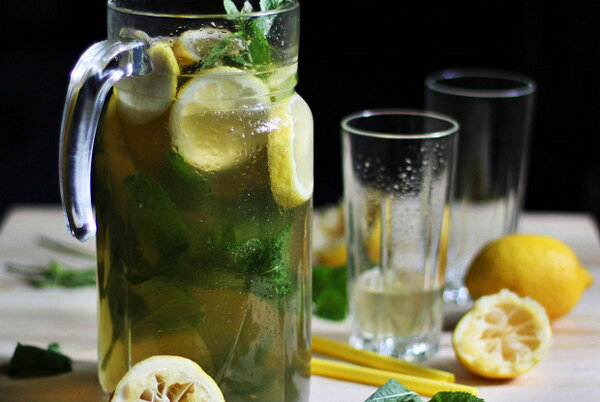 В течение дня я пью прохладный зелёный чай с мятой, который завариваю с утра и храню в холодильнике. Зелёный чай обладает мягким мочегонным эффектом, помогая выводить лишнюю жидкость из организма.