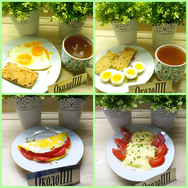 Четвёртый вариант — простые и быстрые блюда из яиц. Приготовьте яичницу, омлет с зеленью и помидором или просто сварите яйца. Базовый вариант содержит 150–200 ккал. Для сытности добавьте цельнозерновой хлеб или бутерброд, тогда калорийность достигнет около 400 ккал.