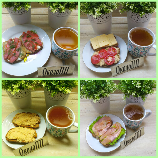 Мой абсолютный фаворит — бутерброды с творожным сыром и красной рыбой. Вы можете варьировать начинку: подойдёт сыр, куриная пастрома, паштет или другие любимые продукты. Для одной порции потребуется около 60 г цельнозернового хлеба, 30 г сливочного сыра и 50 г слабосоленой рыбы (например, кеты). Такой завтрак содержит примерно 320 ккал. Идеально, если хлеб испечь самостоятельно (рецепт по ссылке), а рыбу засолить дома (рецепт здесь).