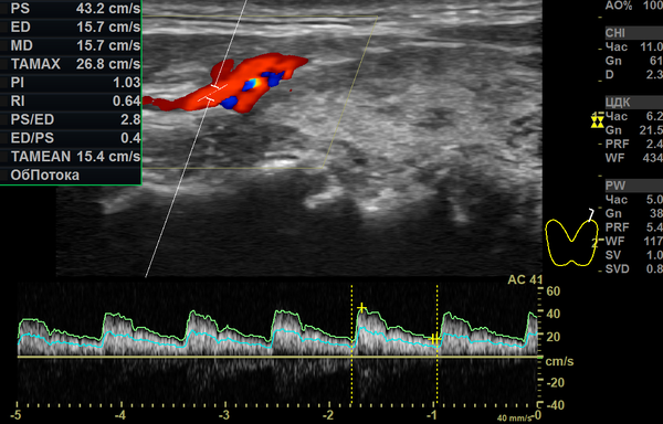 Измерение скорости кровотока в артериях железы — обязательный элемент современного ультразвукового исследования.
