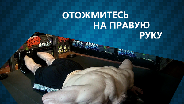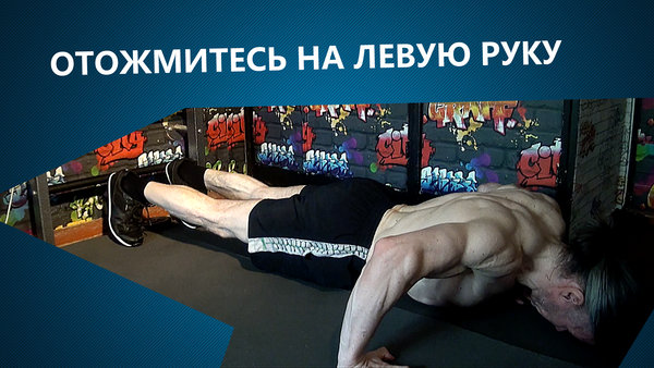 Выполните отжимание, сместив вес тела преимущественно на правую руку. Это создаёт акцентированную нагрузку на одну сторону.