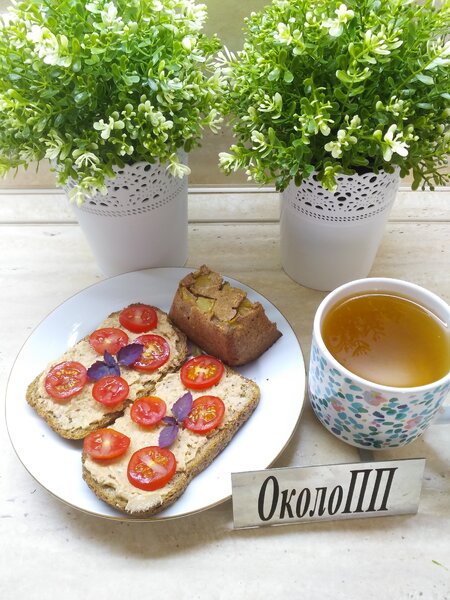Утро началось с питательных бутербродов на цельнозерновом хлебе из пророщенного зерна (60 г) с рыбным паштетом (40 г) и помидорами черри. К ним я добавила кусочек домашнего овсяно-бананового кекса с яблоком и корицей (80 г), который идеально дополнил чашку зеленого чая с жасмином. Во время завтрака я также принимаю пищевые добавки: капсулу Омега-3, витамин D (2000 МЕ) и Биотин для поддержания здоровья изнутри.