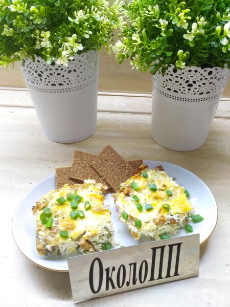 На обед у меня была порция (300 г) вкуснейшей куриной запеканки с грибами и сыром, которую я, кстати, приготовила с добавлением того же мацони. Блюдо получилось сочным и сытным. Дополнила обед парой тонких ржаных хлебцев.
